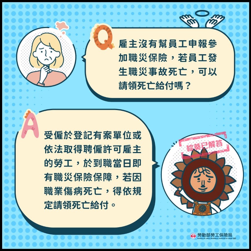 ????:雇主沒有幫員工申報參加職災保險,若員工發生職災事故死亡,可以請領死亡給付嗎![]()