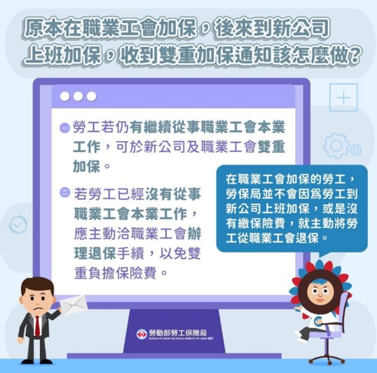 原本在職業工會加保,後來到新公司上班加保,收到雙重加保通知該怎麼做?