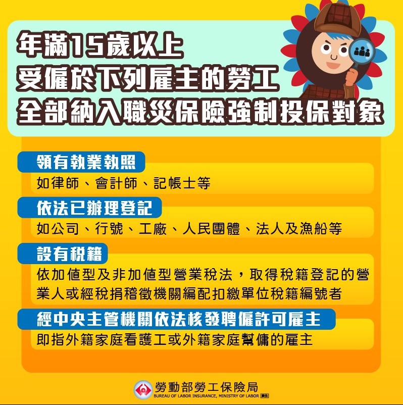 民眾想瞭解更多有關職災保險適用對象規定,歡迎點選: