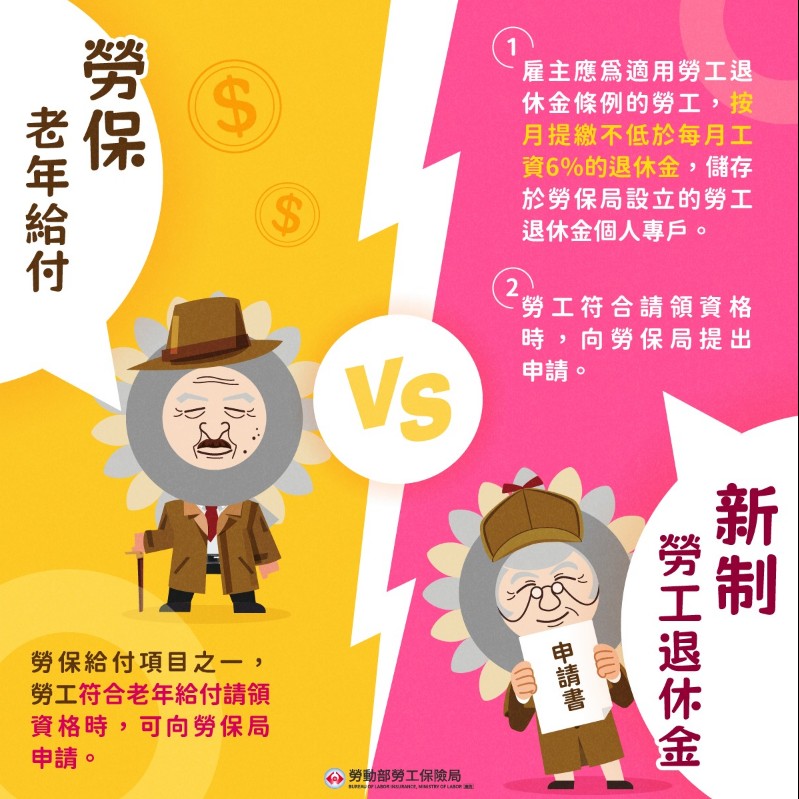 「勞保老年給付」與「新制勞工退休金」兩者是不一樣的喔!