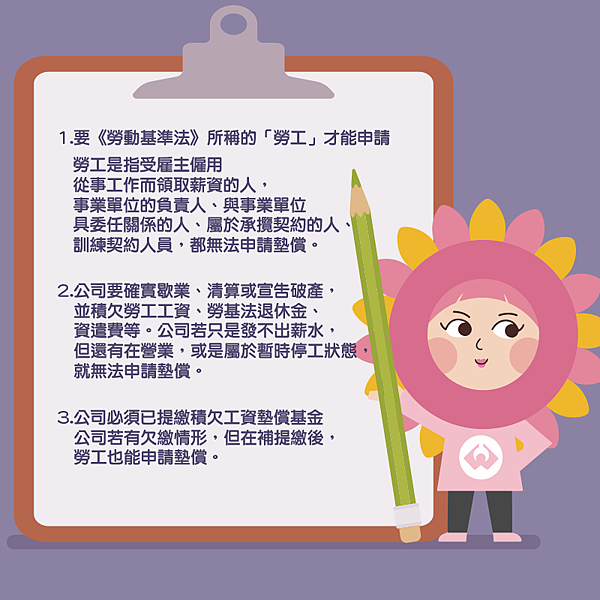 因為粉葵的公司目前還在營運中,所以還不能申請積欠工資墊償,