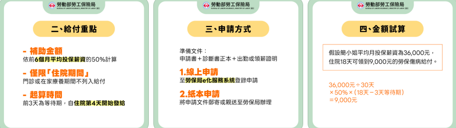 只要在參加勞保期間,符合「普通傷病住院」條件,即可申請勞保傷病給付,減輕休養期間的經濟壓力。