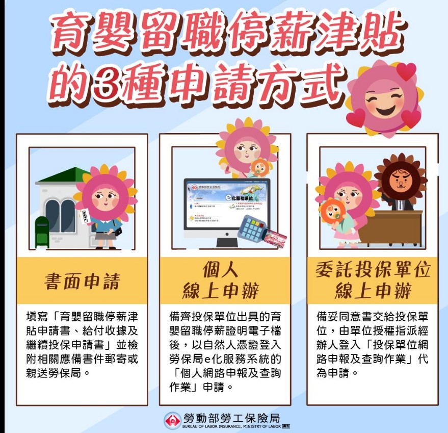 要申辦育嬰留職停薪津貼有3種申請方式!