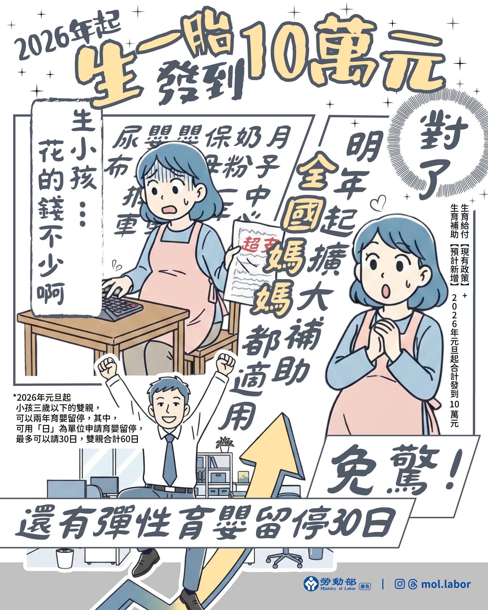 明(115)年元旦起擴大生育補助!給予更多經濟支持!