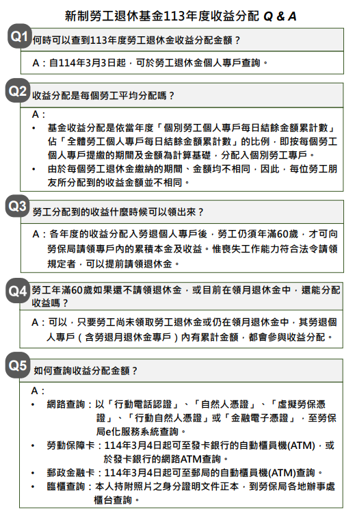 Q1:何時可以查到113年度勞工退休金收益分配金額?