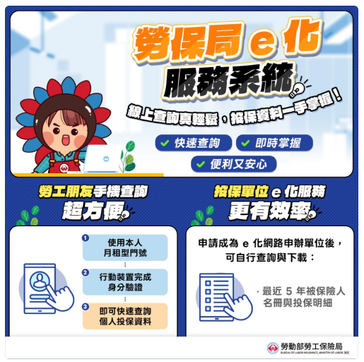 歡迎勞工朋友及投保單位多加利用,輕鬆享受便利的 e 化服務!