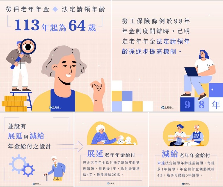 According to Article 58 of the Labor Insurance Act, the qualification age for claiming old-age benefits was increased to 64 years-old as of 2024, and will further increase until the requisite age reaches 65 years-old in 2026.