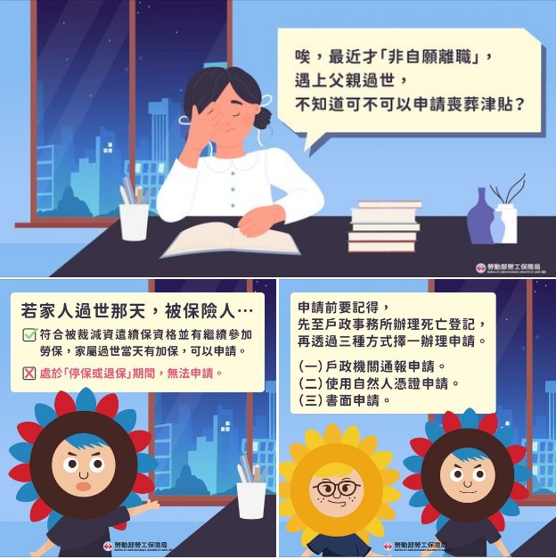 最近才「非自願離職」,遇上父親過世,是否還能申請喪葬津貼呢?