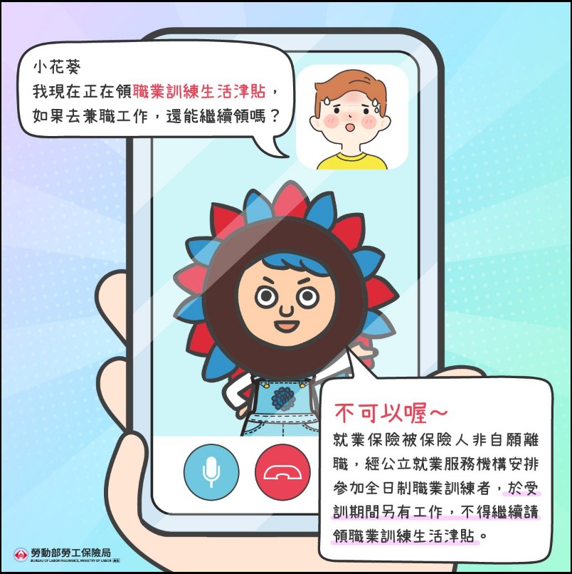 考量社會保險適當保障原則及職業訓練生活津貼發放之立法目的,不得繼續請領職業訓練生活津貼喔!