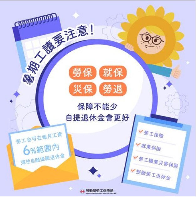 雇主僱用暑期工讀生時,應依規定為其申報參加勞、就、職保,並提繳勞工退休金