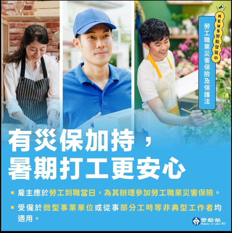 無論勞工從事全職或部分工時,都應依 #勞工職業災害保險及保護法 ,為其辦理參加 #勞工職業災害保險(災保)!