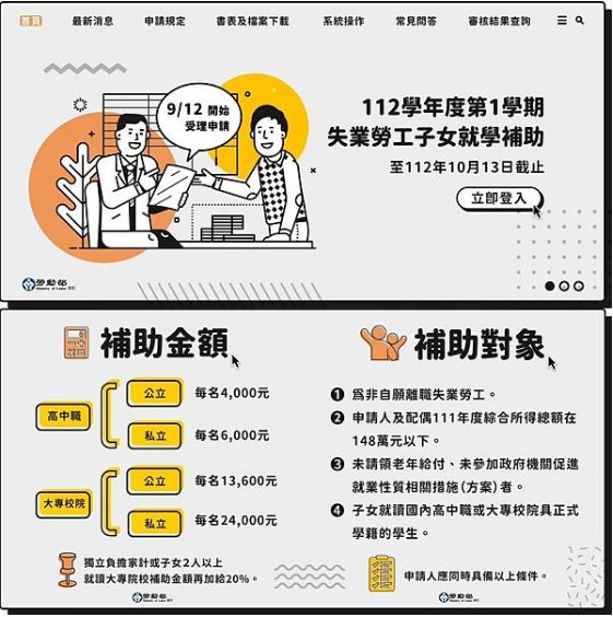 ◆洽詢電話:勞動部失業勞工子女就學補助受理小組02-77563956或1955 免費諮詢專線