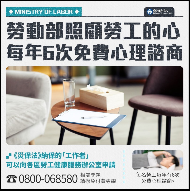 ☗ 照顧勞工的心,每年6次免費心理諮商接住你