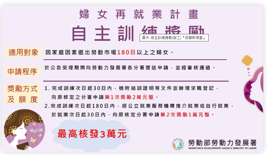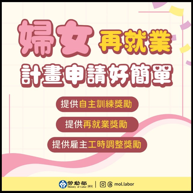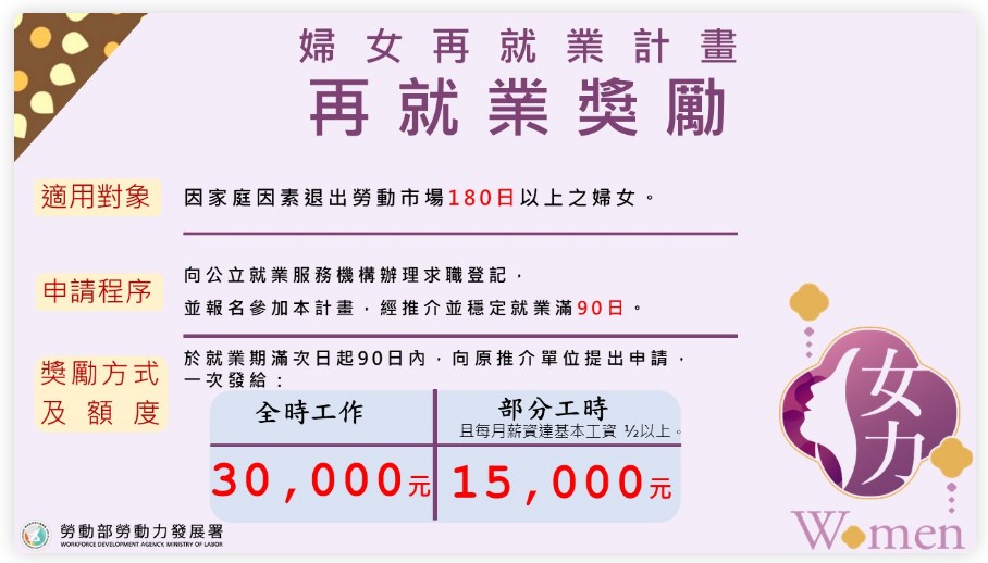 勞動部「婦女再就業計畫」來幫忙!