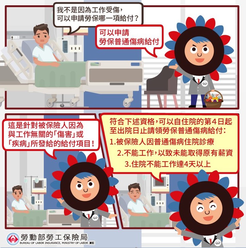 不是因為工作因素受傷,可以申請勞保普通傷病給付​