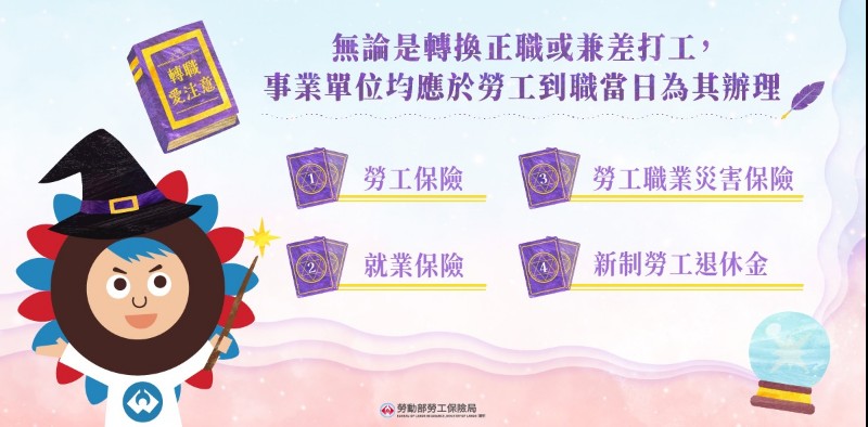 無論轉換正職或兼差打工,事業單位應於勞工到職當日申報參加以下