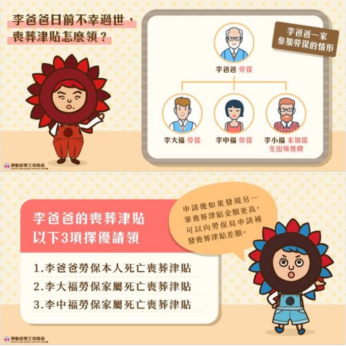 如果已申請其中1筆喪葬津貼後,發現另1筆喪葬津貼更高,5年內還是可以申請補發差額喔!