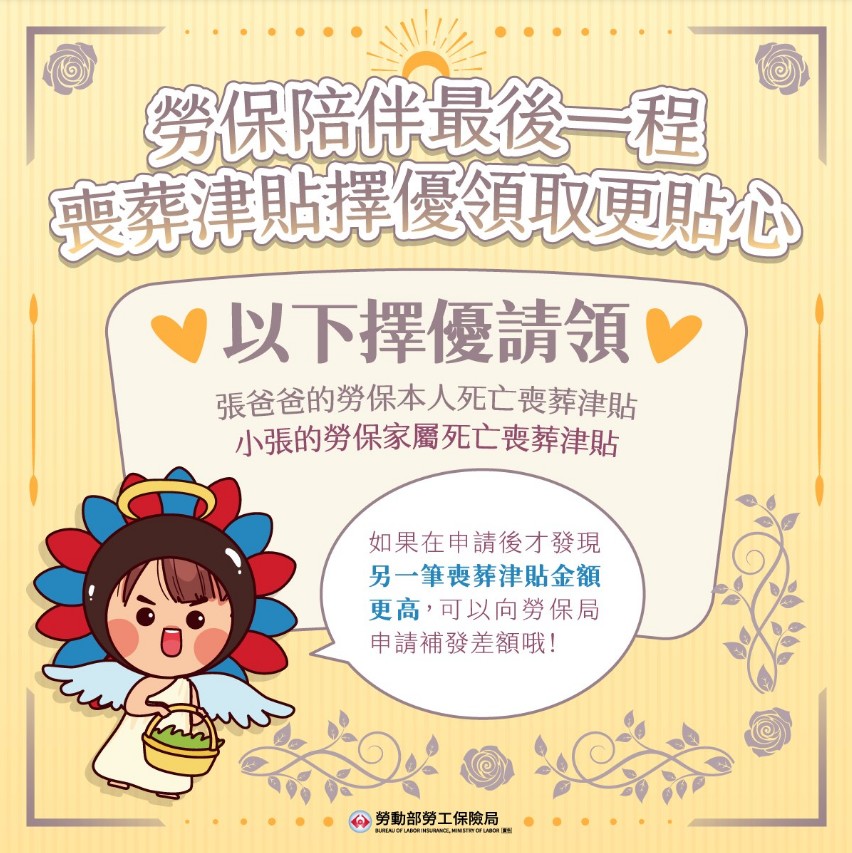 若是在請領喪葬津貼後,才發現另一筆喪葬津貼金額較高,5年內皆能向勞保局申請補發差額![]()