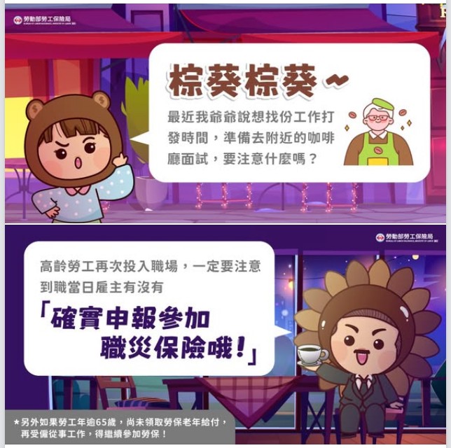 勞保局呼籲,雇主除應依規定於高齡就業勞工到職當日申報參加災保外,並可同時為符合前述勞保加保條件之高齡勞工申報參加勞保,以保障高齡就業勞工的工作及生活安全,共創友善職場。